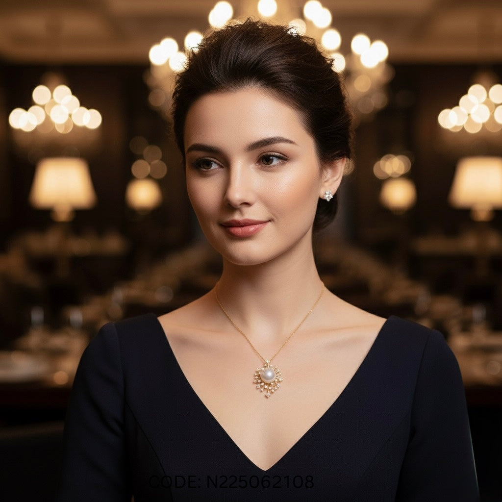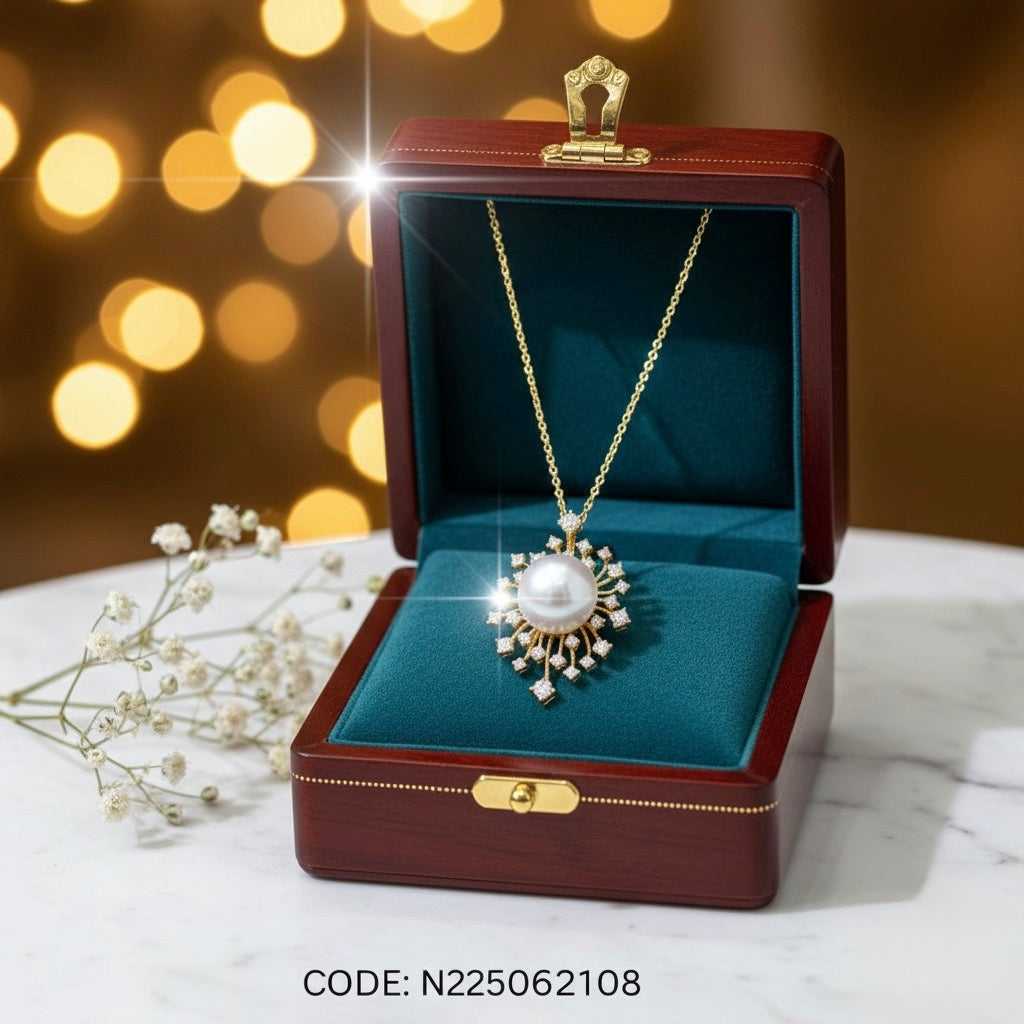 Classic elegance redefined — this pendant features an 8mm cultured pearl surrounded by shimmering white sapphires (1.5mm & 1.75mm), beautifully set in 925 sterling silver with an 18K yellow gold finish. Complete with an 18-inch chain, it’s pure sophistication for every occasion.